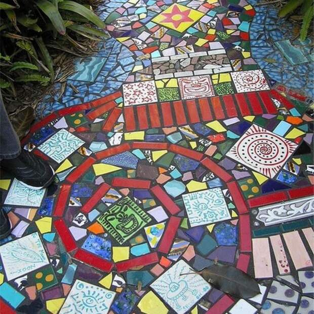 Дорожки, тропиночная сеть — это неотъемлемая часть сада. Они могут стать даже фишкой вашего сада. Примером таких тропинок и площадок могут стать дорожки из мозаики.