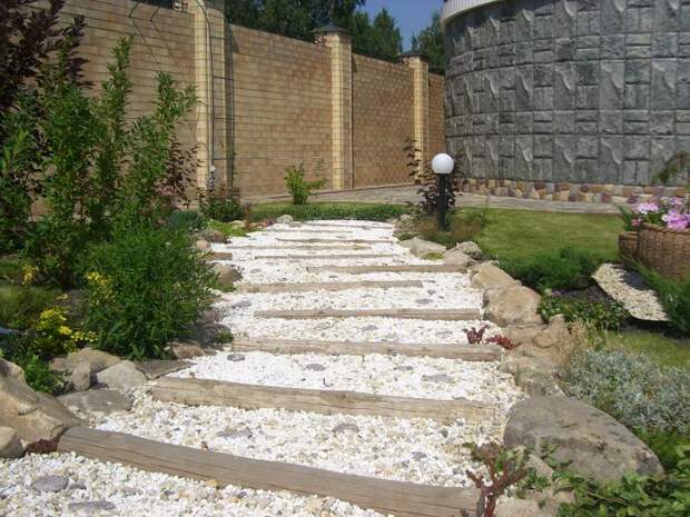 Дорожки с вставками из гальки.