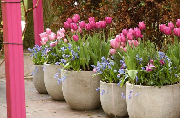 Хорошо вдоль дорожек расставлять акценты, это могут быть весной тюльпаны в горшках, а позже тюльпаны можно заменить на однолетние цветы. Однолетники до осени будут подчеркивать дорожку и направлять идущего по ней.