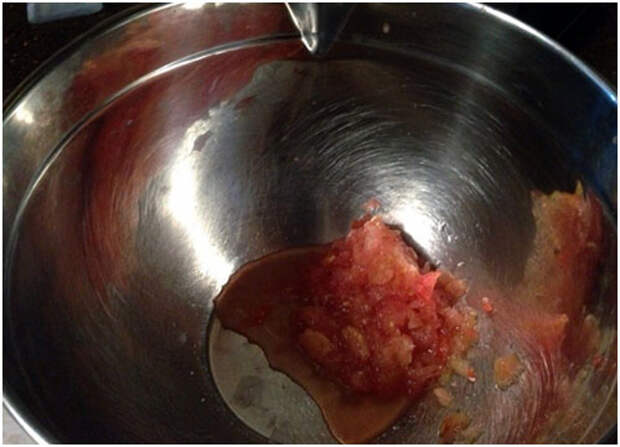 К тертой помидорке добавляем порезанные овощи, специи и масло. Хорошенько перемешиваем.